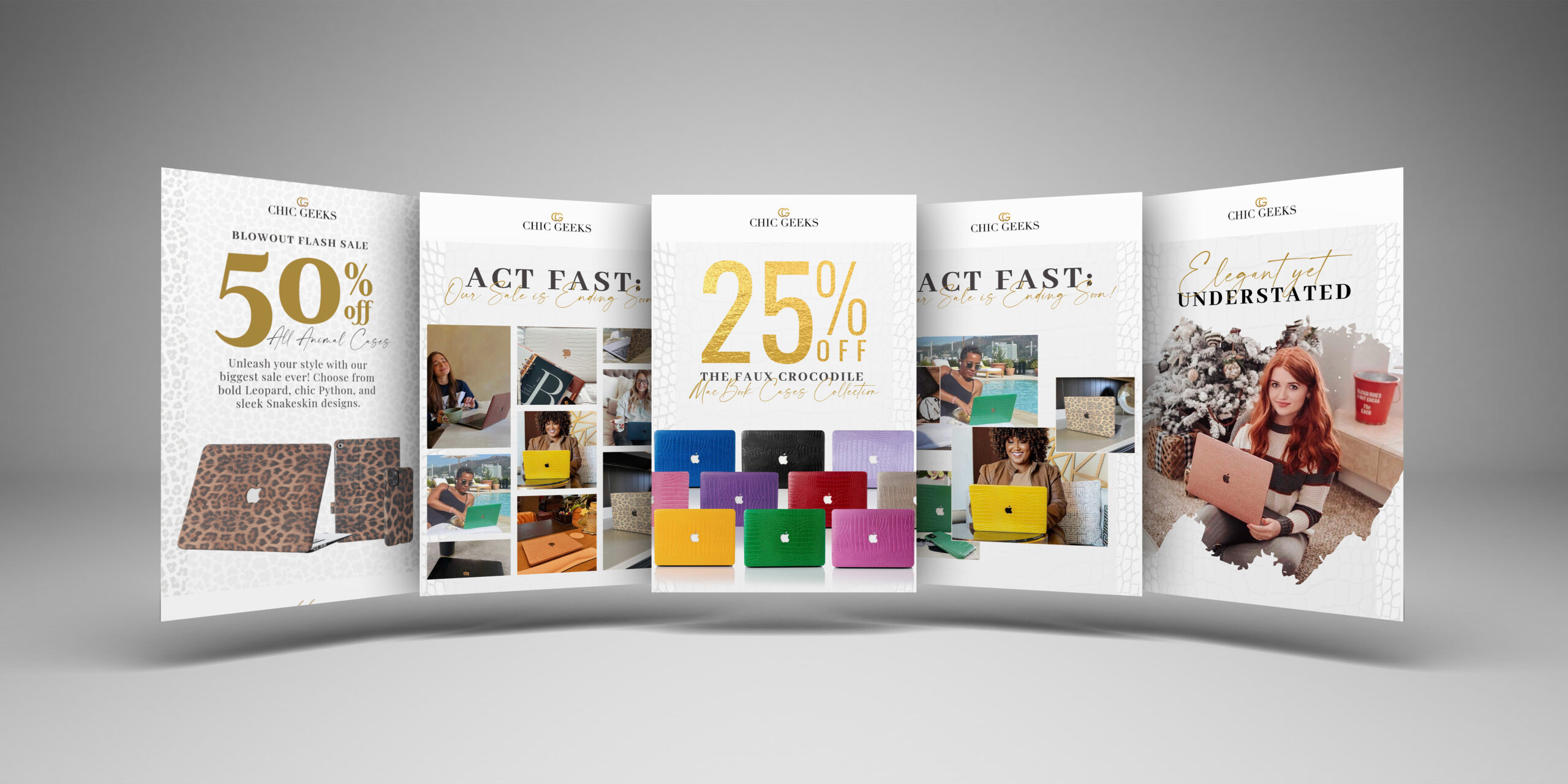 Crafted vibrant social media and marketing creatives for Chic Geeks, blending fashion-forward aesthetics with a modern digital edge. Designed engaging newsletters that reflected the brand’s bold personality and maintained strong customer engagement. Additionally, produced sleek explainer videos that highlighted product features and enhanced Chic Geeks’ online storytelling.